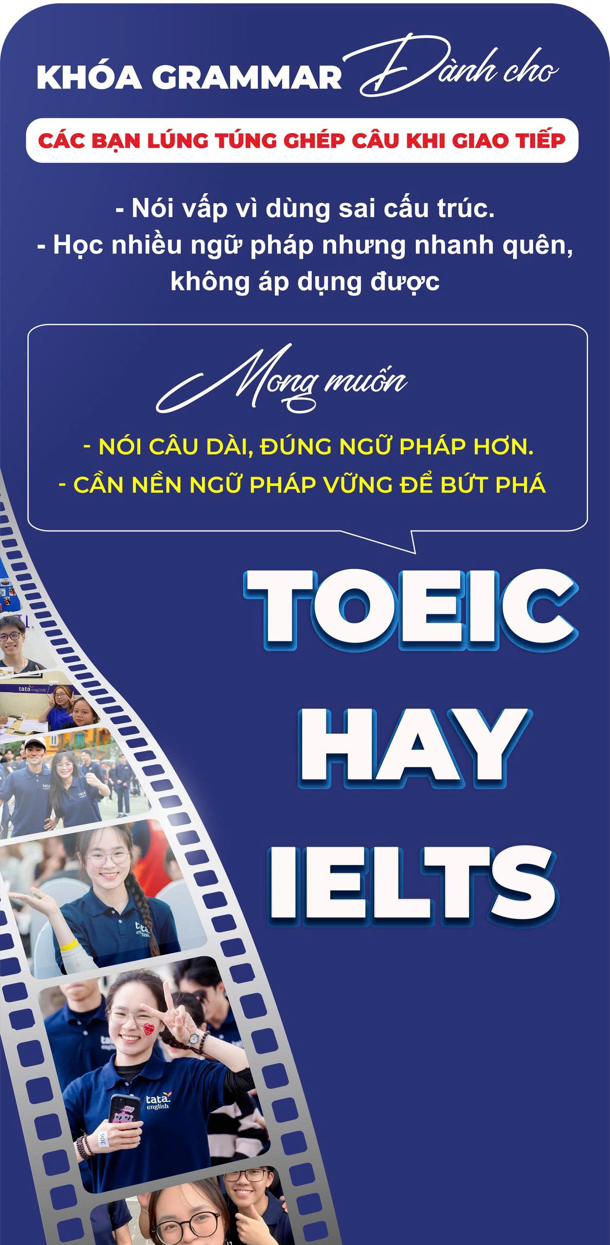 Trên 80% học viên từ mất gốc sau khi học GrammarPro tại Tata English đạt 3.5 IELTS (> 350+ TOEIC) hoặc cao hơn – một nền tảng vững chắc để bước vào TOEIC, IELTS và cả đời thực.